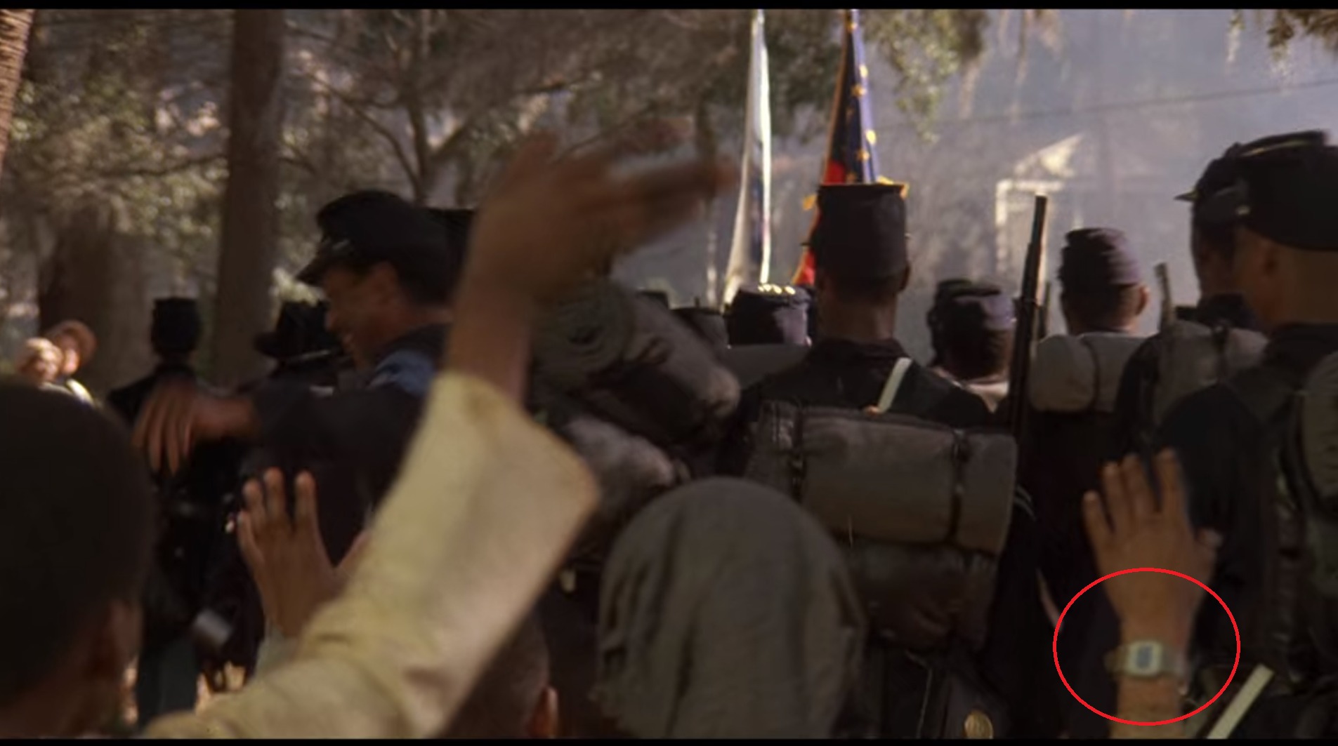 7. În „Glory”, un film în care acțiunea se petrece în timpul Războiului Civil american din secolul 19, un soldat poartă un ceas digital la mână.