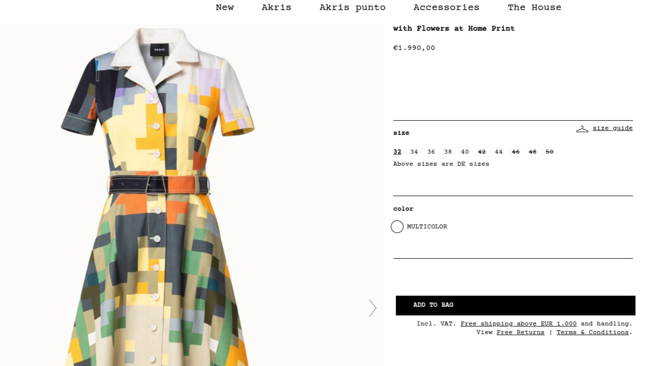 Rochia, foarte scumpă, nu este inspirată, oficial, de jocul video. O astfel de piesă, produsă de casa de modă Akris, costă 1.990 de euro, iar motivele de pe ea, sunt, potrivit designerului, florale.