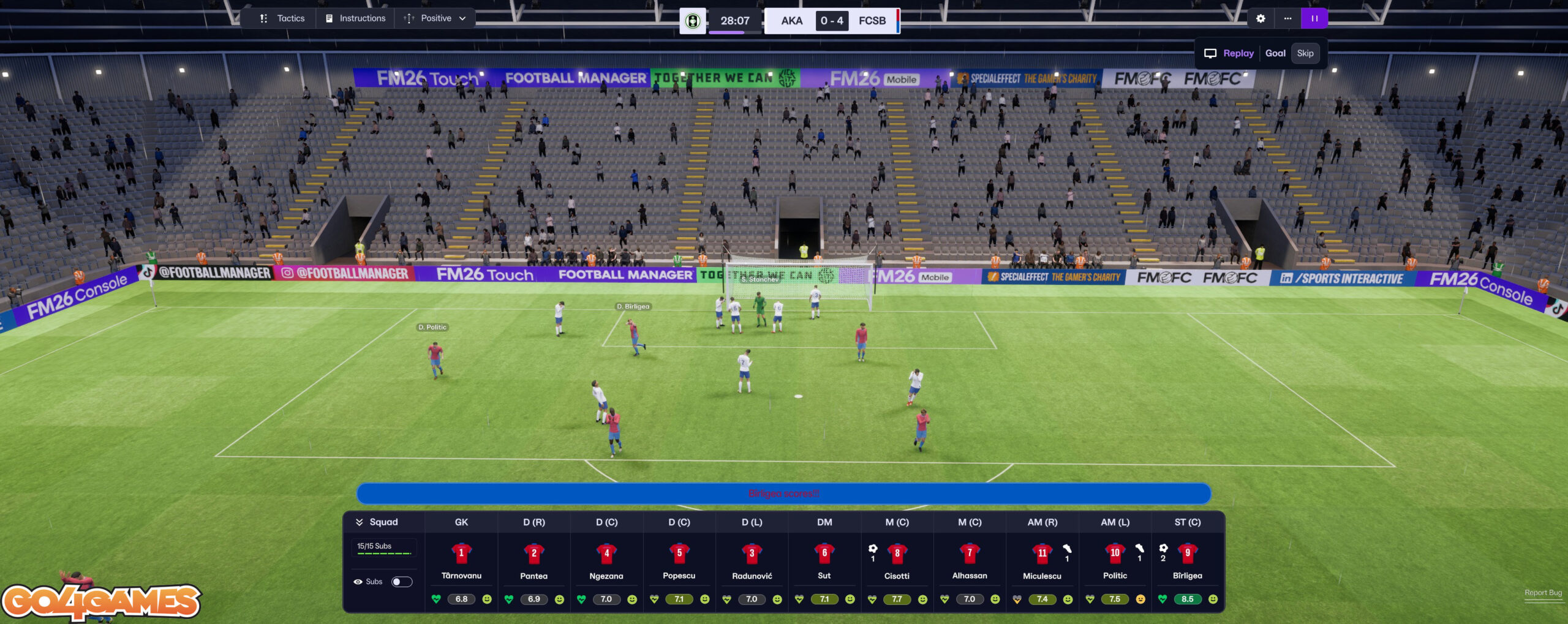 De exemplu, am ales să joc cu FCSB, să simt că acel detaliu contează, iar partea asta trebuie scrisă pe ritm românesc: cariera cu FCSB în Football Manager 26 are ceva din satisfacția de a conduce o orchestră haotică în care tu decizi, în sfârșit, fără să te oblige cineva din lojă să schimbi jucătorul preferat după pofta momentului al unui investitor imaginar. În FM, Becali nu îți bagă schimbările pe gât, tu îți asumi responsabilitatea, ceea ce e o libertate dulce-amăruie, și îți dă voie să te joci cu realitatea internă a clubului mai mult decât ai putut în multe iterații anterioare.