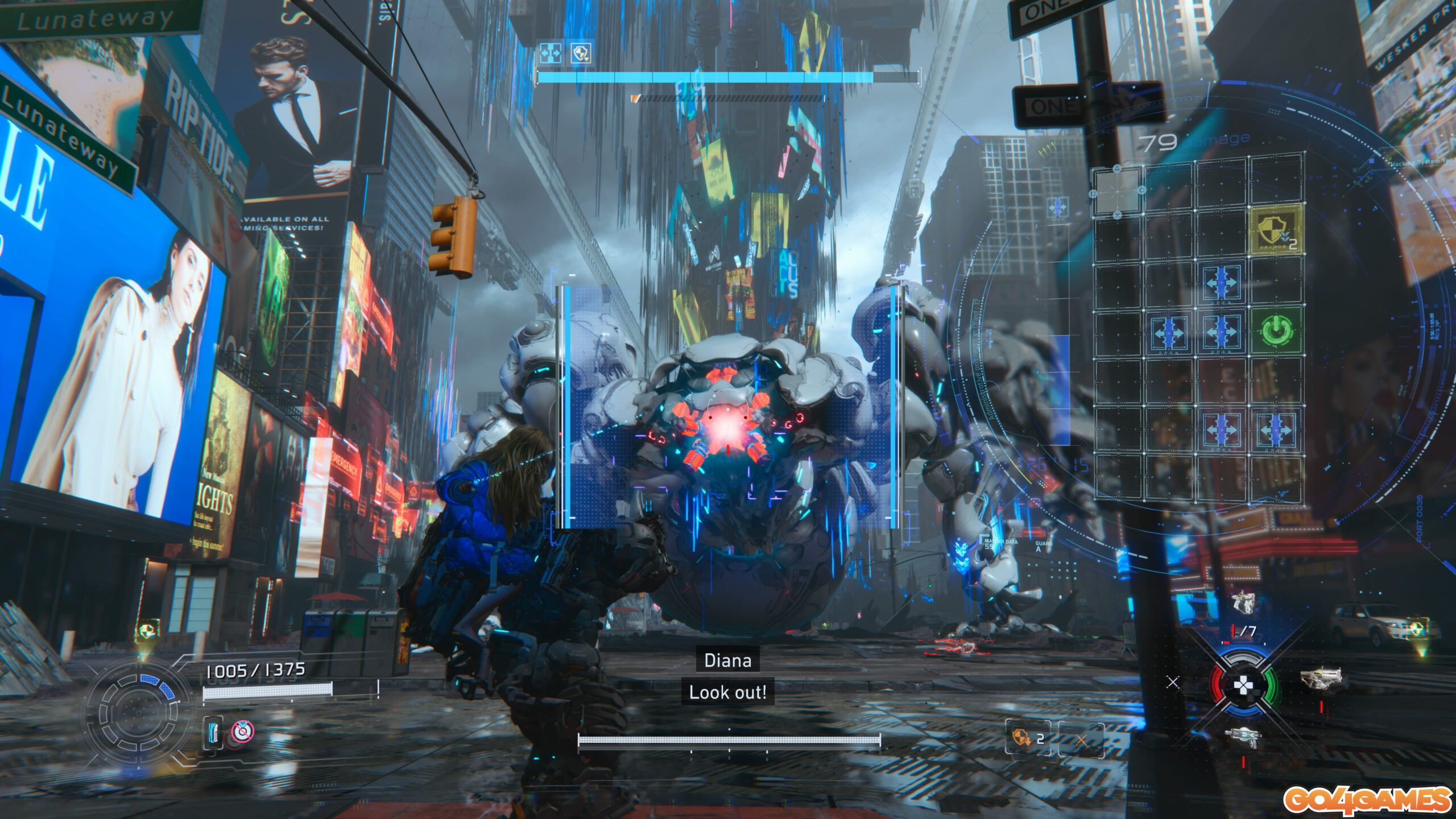 Acestea din urmă sunt reprezentate de abilități de hacking suplimentare, consumabile, cu care poate fi “echipată” Diana: unele vor aplica damage suplimentar la finalizarea secvenței de hack, altele vor evidenția punctele sensibile ale adversarului, unele îl vor încetini, îl vor electrocuta etc. Totul este să le gestionezi corect, “culegându-le” cu pionul tău pe cele necesare atunci când parcurgi traseul pe “grila de hack”.