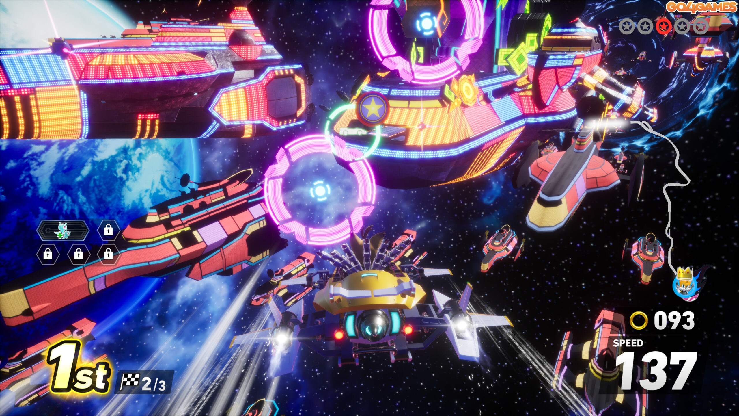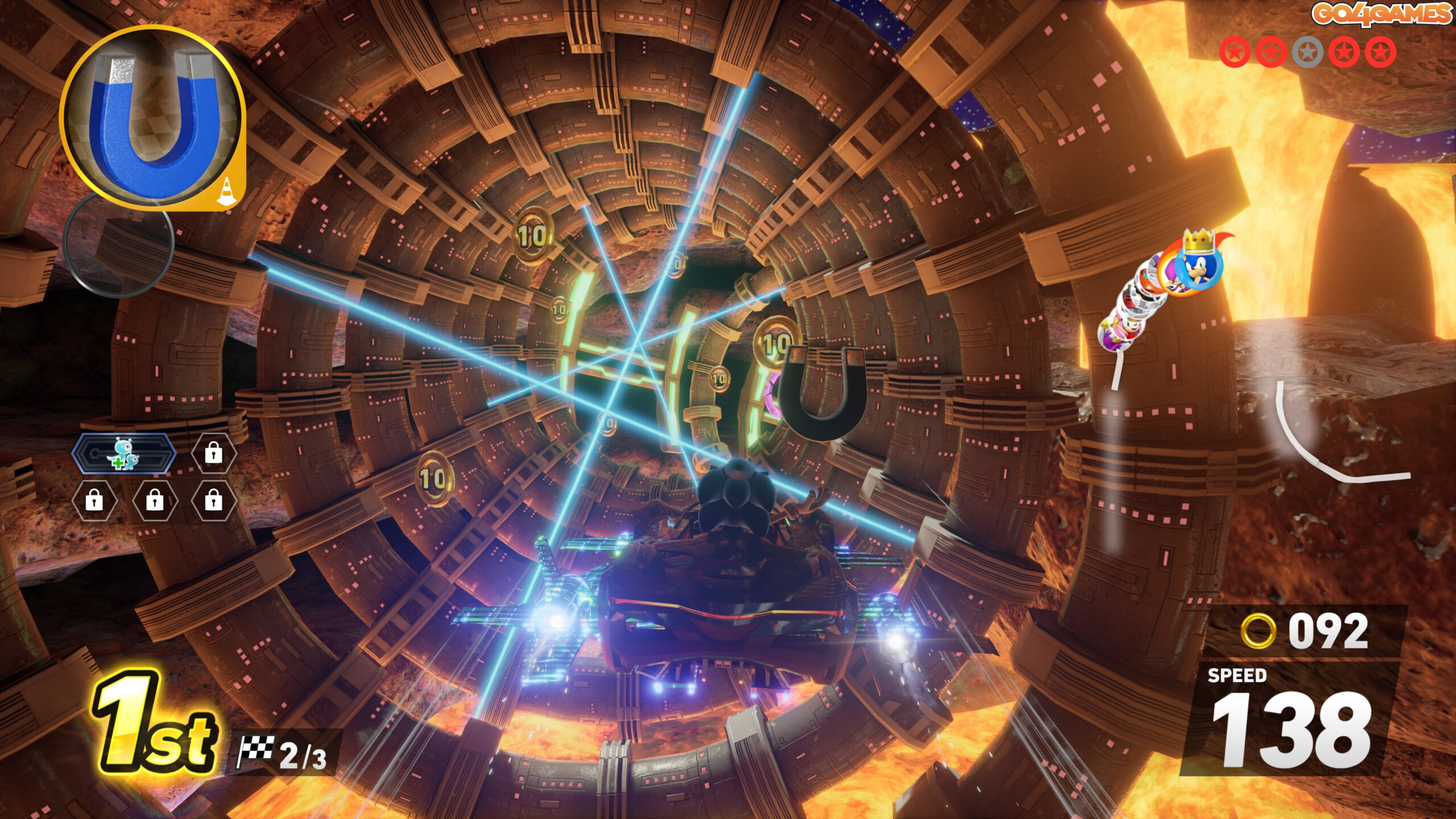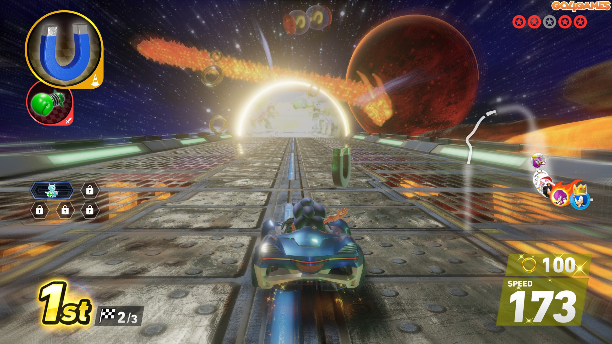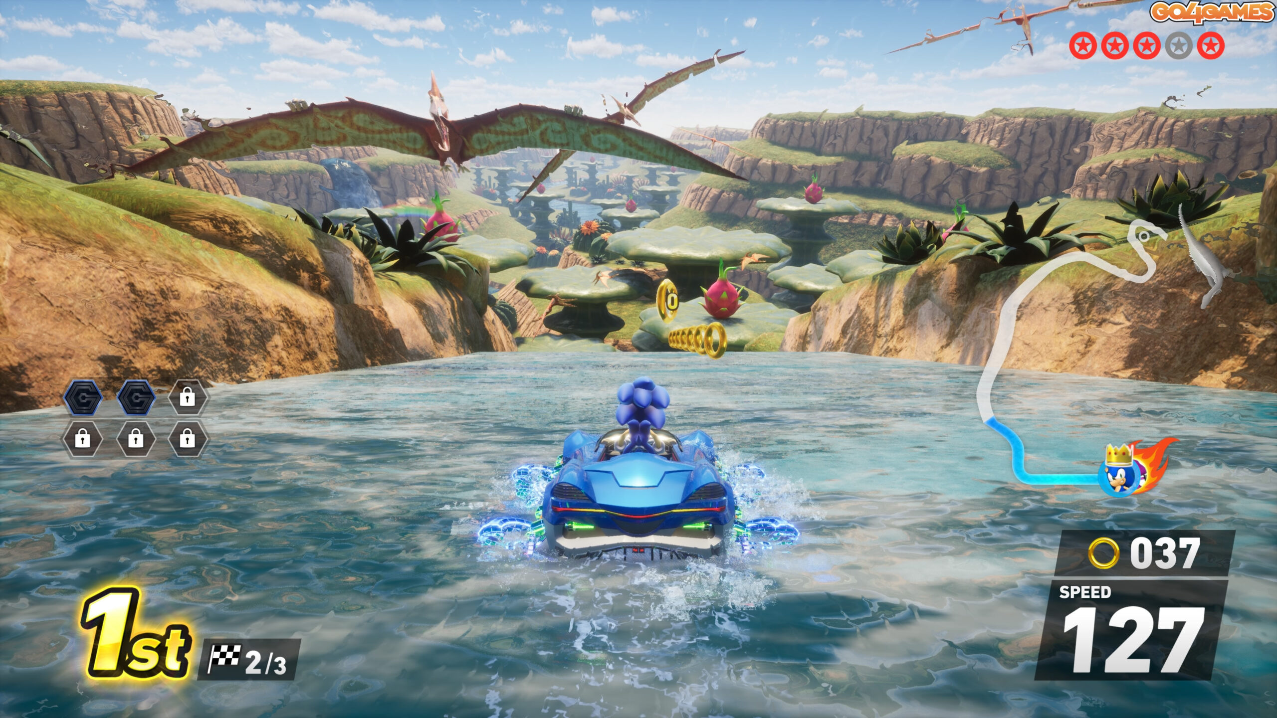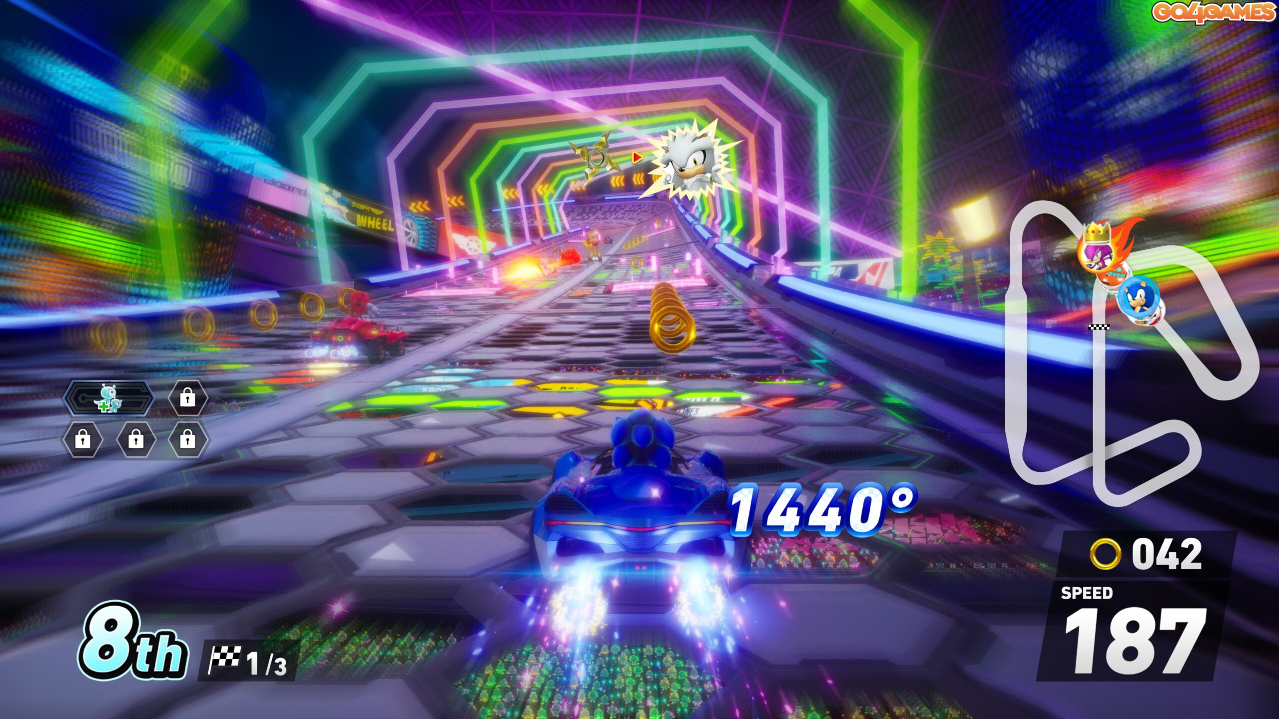 Este ca un Need for Speed versiunea Sonic, doar că în loc de nitro și jante cromate, te joci cu inele aurii și faruri în formă de Chaos Emerald.