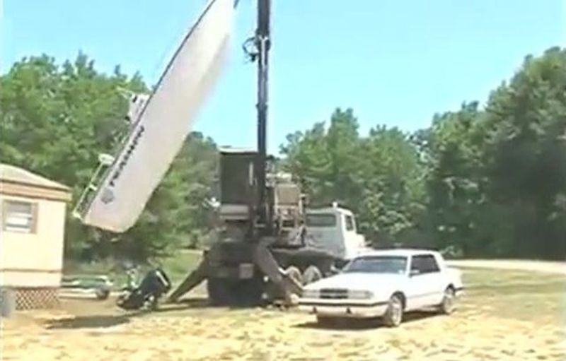 A mers cu utilajul de serviciu la locuinţa rivalului şi a folosit barca acestuia, pe post de bilă pentru domelări, pentru a distruge maşina soţiei lui şi „cuibul dragostei”.