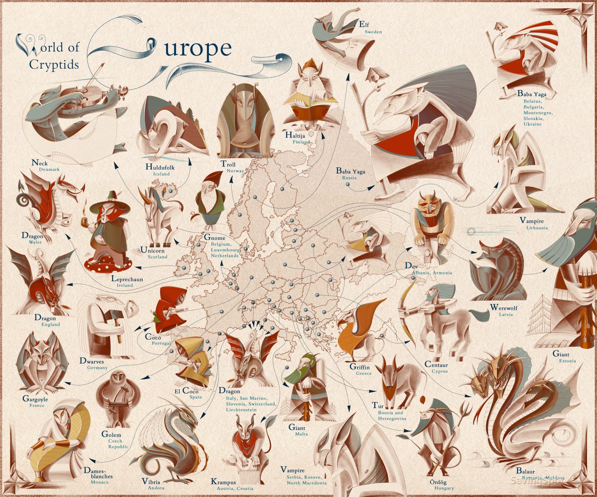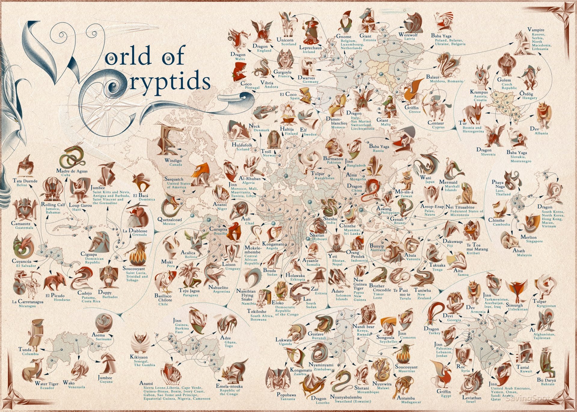 FOTO: Harta cu creatura mitică dominantă din fiecare țară. Alegere surprinzătoare pentru România