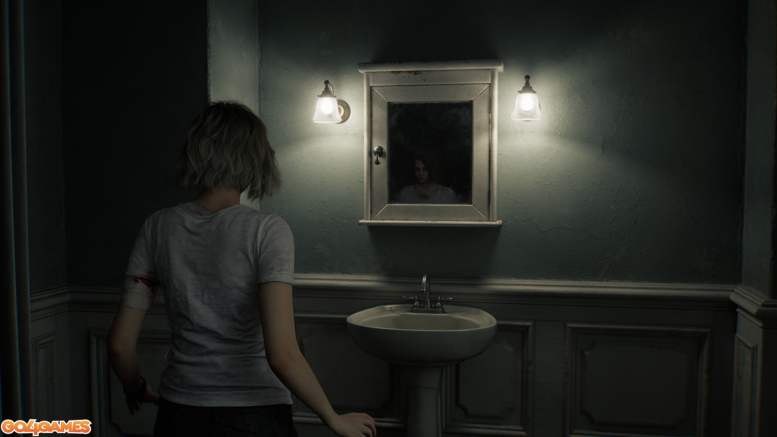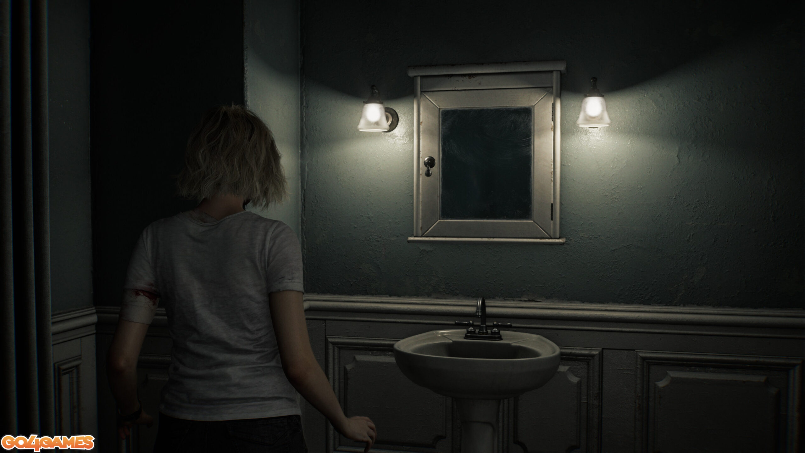 Path Tracing duce lucrurile și mai departe, asigurând o fidelitate sporită a acestor reflexii (grație unei precizii mult mai mari a efectelor bazate pe Ray Tracing), dar adaugă formulei inclusiv iluminarea globală reprezentată în timp real. Cu modul Path Tracing activat, nu doar că lumea de joc este „populată” de tot felul de umbre noi (observați umbrele de sub policioara chiuvetei din selecția de screenshot-uri de mai jos, absente fără Path Tracing), foarte multe dintre obiectele din decor fiind acum “îmbrăcate” de umbre mult mai apropiate de realitate.