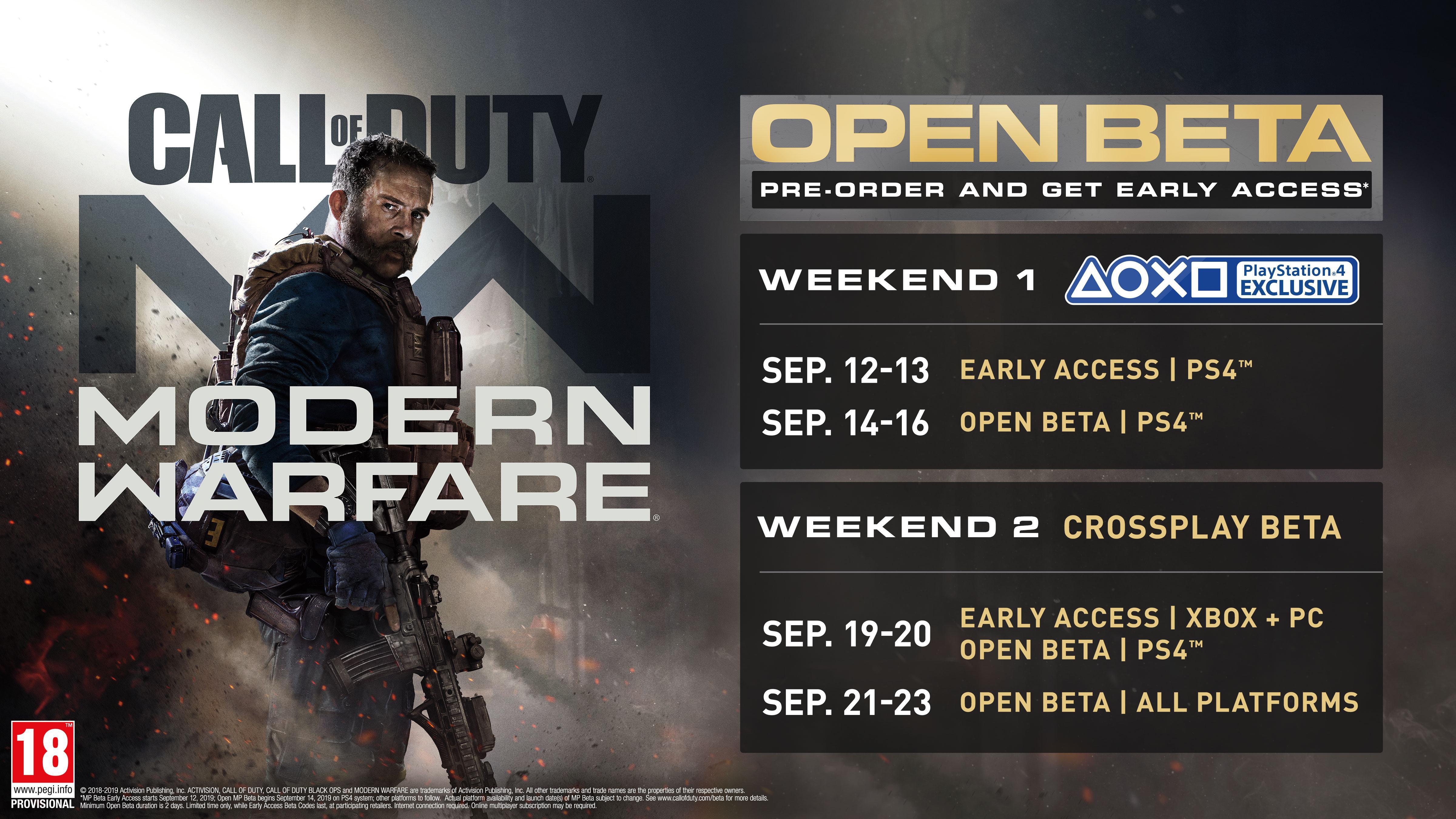 Majoritatea noilor opţiuni vor putea încercate înainte de lansarea jocului, în cadrul sesiunilor de testare beta ce vor avea loc pe parcursul lunii septembrie a acestui an. Prima dintre acestea se va desfăşura exclusiv pe consolele PlayStation 4 şi va avea loc în perioada 12 – 16 septembrie 2019 (12 – 13 septembrie Early Access pentru precomenzi, 14 – 16 septembrie Open Beta). A doua sesiune beta va avea loc în perioada 19 – 23 septembrie (19 – 20 pentru Early Access, 21 – 23 Open Beta) pe PlayStation 4, Xbox One şi PC, şi va oferi funcţionalitate crossplay între aceste platforme.