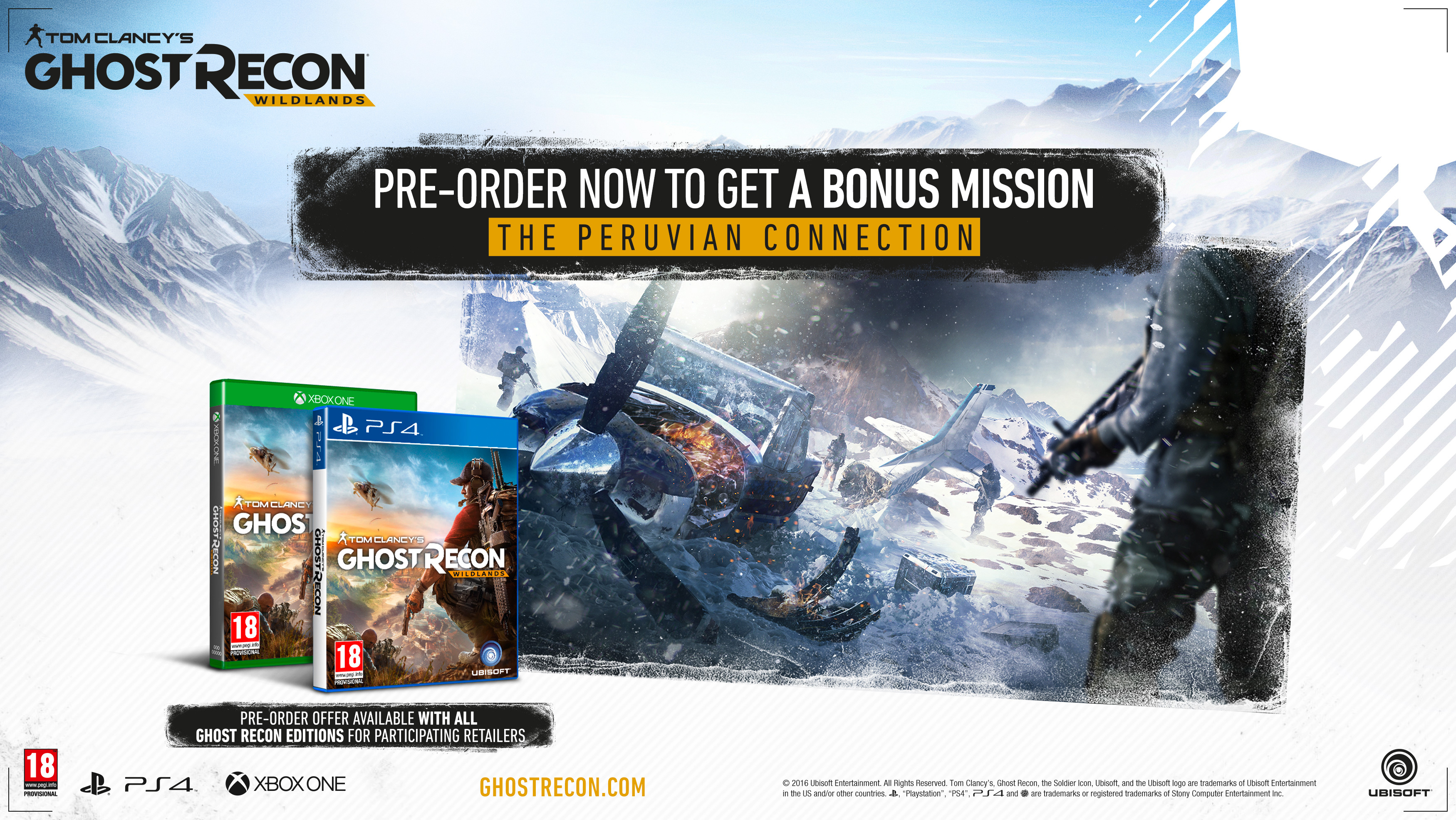 Nu în ultimul rând, va exista un bonus dedicat celor care aleg să plaseze o precomandă pentru Tom Clancy’s Ghost Recon Wildlands sub forma misiunii “The Peruvian Connection”, a cărei acţiune va avea loc la înălţime, în munţii Boliviei, echipa Ghosts încercând să stopeze colaborarea dintre Santa Blanca şi cartelurile din Peru.