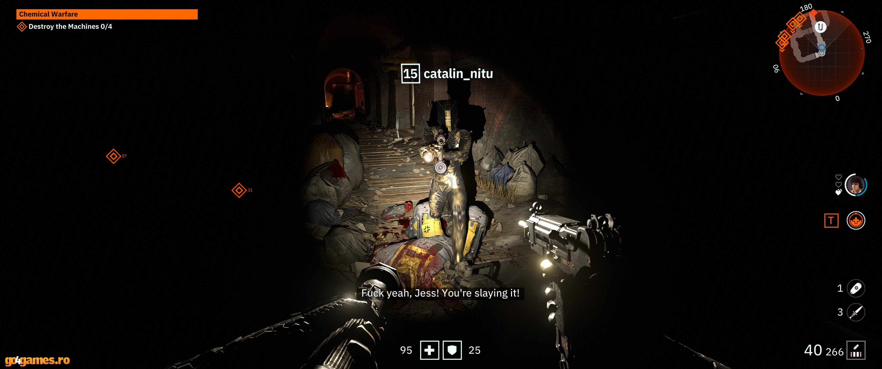 Ce-i drept, pe lângă experienţa necesară avansării în nivel, rezolvarea unor misiuni secundare duce la deblocarea unor căi de acces mai facile către misiunile principale, structurate oarecum precum dungeon-urile cu mai multe niveluri din seria Diablo. Cu alte cuvinte, până ajungi să înfrunţi boşii a căror doborâre duce povestea mai departe, trebuie să treci prin multiple niveluri repetitive în care să reduci la tăcere armate din ce în ce mai numeroase de nazişti. Pentru ca lucrurile să devină şi mai enervante, cele două surori, fie că jucaţi singur alături de AI, fie că aţi ales alternativa co-op, au la dispoziţie un număr limitat de “vieţi” comune, pierderea în totalitate a acestora ducând la reluarea nivelului în curs de la început. Iar progresul între aceste multiple niveluri ale “dungeon-ului” ce duc spre un boss este pierdut dacă, din varii motive, alegi să întrerupi sesiunea curentă a jocului.